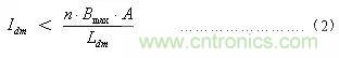 式中,是差模峰值電流,Bmax是磁通量的最大偏離,n是線圈的匝數,A是環形線圈的橫截面積。Ldm是線圈的差模電感。