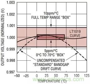 例如,指定為100ppm/°C的基準電壓源傾向于在任何溫度范圍內(nèi)都有相當好的線性度,因為元件不匹配引起的漂移完全掩蓋了其固有非線性。相反,指定為5ppm/°C的基準電壓源,其溫度漂移將以非線性為主。