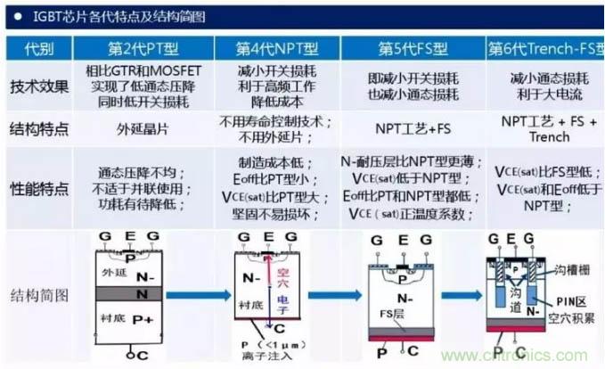 1985年前后美國GE成功試制工業樣品(可惜后來放棄)。自此以后, IGBT主要經歷了6代技術及工藝改進。