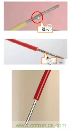 浸錫就是將金屬表面沾上一層錫,防止氧化,方便焊接。時(shí)至今日,浸錫在連接器行業(yè)中仍是廣泛應(yīng)用,浸錫的好壞直接影響到產(chǎn)品的性能及使用壽命。我們都知道導(dǎo)體的電阻在電流的作用下會(huì)發(fā)熱,電流越大發(fā)熱量也就越高,浸錫工藝可以將一根一根細(xì)導(dǎo)線間的空氣用錫填滿(mǎn)從而減少發(fā)熱量。同時(shí)由于多股導(dǎo)線容易散,直接壓在接線端子上時(shí),接觸面積會(huì)減少,所以很多廠家選擇浸錫的方式,以免接觸不良發(fā)熱燒壞。浸錫標(biāo)準(zhǔn)比較嚴(yán)格,需均勻,平滑,厚度0.05~0.1mm,不能有錫尖,凸錫球,漏錫,堆疊,變形等情況發(fā)生,否則反而會(huì)加大接觸電阻,增加發(fā)熱量。