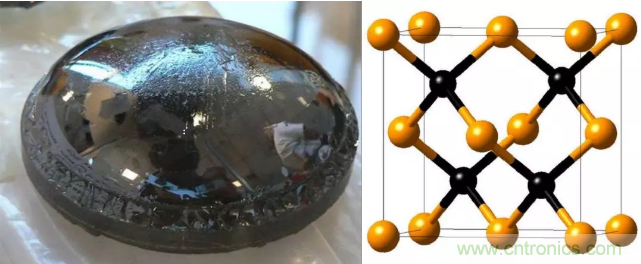 左邊:碳化硅(SiC)晶體;右邊:SiC晶體結構