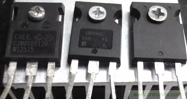 恰好手邊有如下功率MOS管,左邊為碳化硅MOS管,型號為C2M0080120,它的耐壓為1200V,導通電阻80m歐姆。