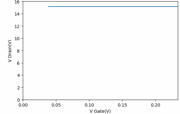 對于IRF450的擊穿電壓測試曲線,當電壓超過600V的時候,漏極電流激增。這與該期間的數據手冊上標稱的耐壓基本相當。