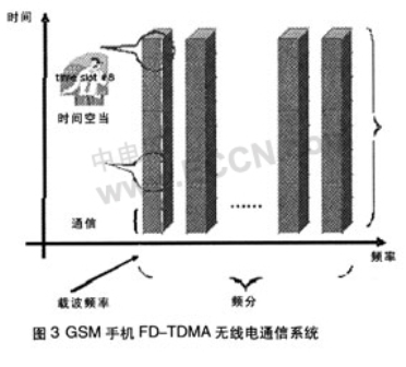 思考當(dāng)今電子世界,到處信號持續(xù)不斷地變化:音頻的輸入/輸出能產(chǎn)生輻射及傳導(dǎo)EMI,然后發(fā)射更高頻率的射頻線,導(dǎo)致信號失真;手機(jī)天線(TDMA脈沖)會發(fā)射射頻信號,此信號可被長線頭戴式耳機(jī)接收,導(dǎo)致音頻信號通路中EMI噪音;GSM(全球通)手機(jī)標(biāo)準(zhǔn)使用頻分多路傳輸和時分多路傳輸,同時傳送大量電話,如圖3所示。