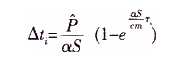 以上分析考慮了主動部分的熱容量(cm)在脈沖功率的作用下吸收熱量使自身的溫度上升的情況,實際上,由于散熱(αS)作用,這個過程符合于一個指數(shù)規(guī)律,時間常數(shù)αS/cm表明了這個指數(shù)規(guī)律的特征。