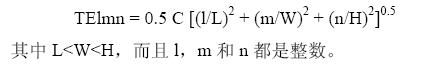 令l 和m 等于1,而且n 等于0,則我們可以計算TE110模對應的腔體的最低諧振頻率。