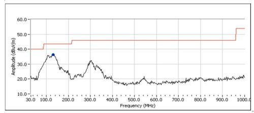 圖2.LM48310的EMI測試結果符合FCCB級限制水平。