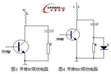 在開關(guān)管T 兩端加RCD吸收電路,如圖4所示。