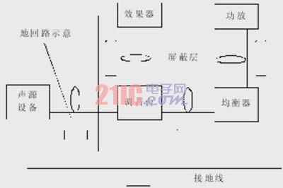 為保證系統不出現地環路結構,要求各設備間只能有一條接地導線互連,在要求不嚴謹的場合。可以讓不平衡設備懸浮,通過音頻信號線共用下一級設備的地線。也就是采用鏈形接地,但這種鏈形接地的級數不能太多,一般不超過2級。否則將使噪聲嚴重增加。[page]