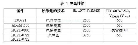 UL1577、IEC60747-5-2、IEC61010-1和CSA測試了ISO72x系列隔離性能。表1顯示了說明該三種隔離技術的這五個器件的隔離性能。