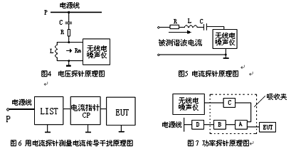 國(guó)際曾有人建議對(duì)小型電子設(shè)備采用類似于CLSPRl4一l(對(duì)應(yīng)的我國(guó)國(guó)家標(biāo)準(zhǔn)是GB4343—l《家用和類似用途電動(dòng)、電熱器具、電動(dòng)工具以及類似電路的無線電干擾特性的測(cè)量方法和允許值》)中所提供的吸收鉗(或稱為功率探針、鐵氧體鉗)方法來測(cè)試EUT對(duì)外的輻射功率。利用吸收鉗可以測(cè)量5MHz—300MHz的傳導(dǎo)干擾功率。采用此法的前提是EUT尺寸較小,其輻射到空間的能量主要是通過EUT的電源線等逸出的。因此,對(duì)這部分能量的測(cè)量可以用一個(gè)環(huán)繞電源線的吸收裝置來實(shí)現(xiàn)。這個(gè)吸收裝置便被稱為吸收鉗。這個(gè)方法的優(yōu)點(diǎn)是簡(jiǎn)便易行,對(duì)環(huán)境要求不高,在屏蔽室里便可進(jìn)行,而且測(cè)試結(jié)果有很好的重復(fù)性和可比性。電壓、電流傳導(dǎo)干擾可分別由電壓探針和電流探針測(cè)出。圖4、圖5分別為電壓探針和電流探針原理圖。圖6為電流探針測(cè)量電流傳導(dǎo)干擾原理圖。功率探針原理見圖7。
