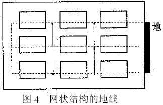 對于同類單元電路(或元器件)提高電磁兼容性效果的有效方法是采用網狀結構地線如圖4所示。圖中實線為正面軌線,虛線為反面軌線,實線與虛線相互垂直,交叉點處由金屬化孔連接。這樣電流可以就近回流。圖4中的垂直地線可能給正面布線造成一定困難,可用小型母線來替代,并與電源供電線連結起來如圖5所示。圖中垂直的寬線條代表小型電流母線,可以裝卸,便于調度。