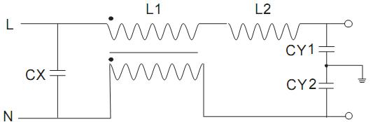 圖1是開關電源常用的一級EMI 濾波器的電路。圖中的L1為共模扼流圈,Cx、CY1、CY2為安規電容,對于小型開關電源來講,由于體積的限制,很多時候會將CY1、CY2會省略掉的,甚至連L1也會省去。圖中 共模扼流圈L1的兩個線圈匝數相等,方向相同,這兩個電感對于差模電流和主電流所產生的磁通是方向相反、互相抵消的,因而不起作用;而對于共模干擾信號,兩線圈產生的磁通方向相同,有相互加強的作用,每一線圈電感值為單獨存在時的兩倍,從而得到一個高阻抗,起到良好的抑制作用。共模電感兩邊感量不相等形成的差模電感L2一起與Cx電容組成一個低通濾波器,用來抑制電源線上存在的差模干擾信號。CY1與CY2的存在是給共模噪聲提供旁路,同時與共模電感一起,組成LC低通濾波器。共模噪聲的衰減在低頻時主要由電感起作用,而在高頻時大部分由電容CY1及CY2起作用。同時,在安裝與布線時應當注意:濾波器應盡量靠近設備入口處安裝, 并且濾波器的輸入和輸出線必須分開,防止輸入端與輸出端線路相互耦合,降低濾波特性。濾波器中電容器導線應盡量短,以防止感抗與容抗在某頻率上形成諧振。