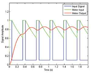 在實(shí)時(shí)頻譜分析儀中,準(zhǔn)峰值檢波器使用數(shù)字濾波器實(shí)現(xiàn)。可以使用數(shù)字濾波器,如無(wú)窮脈沖響應(yīng)(IIR)濾波器,仿真?zhèn)鹘y(tǒng)EMI接收機(jī)使用的RC充電電路和放電電路。這種臨界阻尼表還可以建模為二階數(shù)字IIR濾波器。儀表上顯示的最大值取為準(zhǔn)峰值檢波器器值。