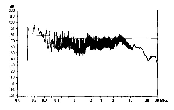 圖6進線電抗器+EMI濾波器后所測的傳導騷擾