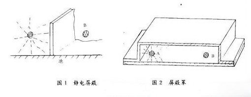 也可作成屏蔽罩,如圖2所示,也能獲得好的屏蔽效果。由圖2看出,A點的電力線也達不到B點,因此也能起到良好的靜電屏蔽作用。