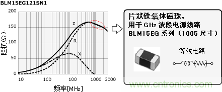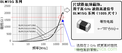 此時(shí),請(qǐng)選擇GHz波段阻抗高的BLM-H系列 (抑制GHz波段噪聲) 或BLM-G系列 (抑制高GHz波段噪聲) 的鐵氧體磁珠。
