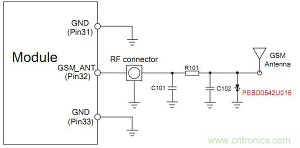 此模塊USB經常用來配置數據,插拔容易被靜電損壞,本方案可以采用分立器件或者集成器件,但要確保選擇的器件結電容小于3PF。