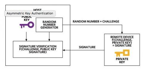 圖2. 非對稱密鑰安全認證依賴于公鑰和私鑰。
