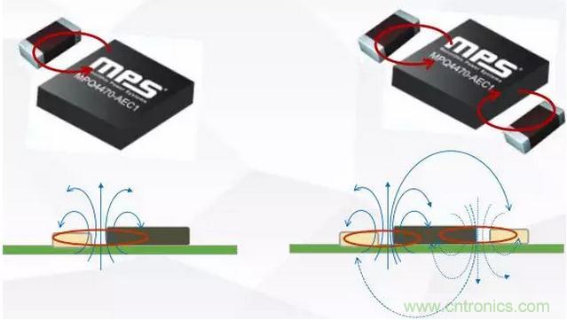 如圖7所示,對稱電容設計能明顯抵消磁場,如果電容集成到芯片內部的話對傳導和輻射的高頻干擾都能起到極大的抑制作用,MPS的MPQ4491M就是一款高度集成的車載充電芯片方案,內部集成了電容,具有良好的EMI性能。