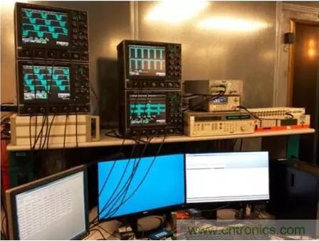 圖2:在EMC干擾室外用于抗干擾數據動態分析的示波器陣列