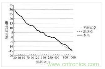 所以,當(dāng)電波暗室使用木桌或其他較大介電常數(shù)材質(zhì)制作的試驗桌等輔助設(shè)施時,會使場地衰減AN 增大而導(dǎo)致接收機測得的電場強度減小,使測試結(jié)果造成差異。試驗桌等輔助設(shè)備是試驗場地有效性中不可分割的一部分,因此建議,在選擇暗室輔助設(shè)施時選擇介電常數(shù)小的材質(zhì),并進行場地衰減的測量比較,以保障各暗室測量結(jié)果的一致性。