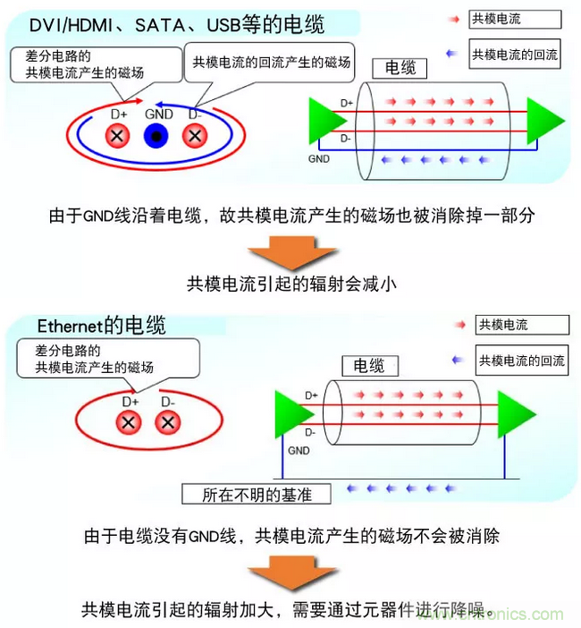 Ethernet等差分信號傳輸中因各種原因共模電流會產生噪聲。