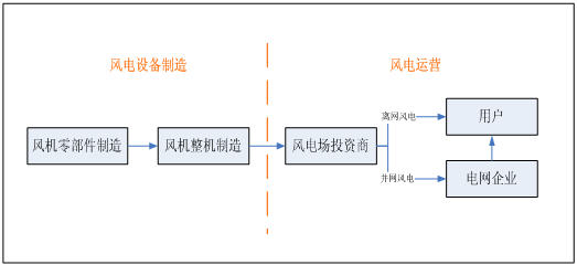 風(fēng)力發(fā)電產(chǎn)業(yè)鏈總體上分為風(fēng)電設(shè)備制造和風(fēng)電運(yùn)營(yíng)兩個(gè)環(huán)節(jié),其中風(fēng)電設(shè)備制造又可細(xì)分為風(fēng)機(jī)零部件制造和風(fēng)機(jī)整機(jī)制造,風(fēng)電運(yùn)營(yíng)從風(fēng)電場(chǎng)投資開始,按照運(yùn)營(yíng)模式的不同分為并網(wǎng)和離網(wǎng)兩種,并網(wǎng)風(fēng)力發(fā)電以運(yùn)營(yíng)商為主體構(gòu)建整個(gè)體系,離網(wǎng)風(fēng)力發(fā)電以銷售商為主體構(gòu)建整個(gè)體系,風(fēng)力發(fā)電產(chǎn)業(yè)鏈如下圖所示。總體上風(fēng)機(jī)零部件及整機(jī)制造處于初創(chuàng)期向成長(zhǎng)期的過渡階段,風(fēng)電運(yùn)營(yíng)處于成長(zhǎng)期。