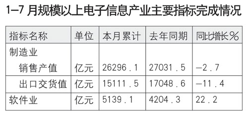 1-7月規(guī)模以上電子信息產(chǎn)業(yè)主要指標(biāo)概覽