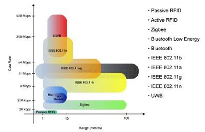 當選擇無線接口時,功耗、數據速率和數據范圍是其中需要考慮到的三個關鍵因素(參見圖2)。以ZigBee為例,該協議可以在全球范圍使用;數據速率和占空比適中;支持無線網狀網絡,允許同一系統中存在多個傳感器。藍牙和藍牙低功耗(BLE)協議所提供的范圍雖有所限制,但數據速率更高。BLE在傳感器端具有更低的功耗,從而允許使用相對傳統藍牙而言外形更小的電池。