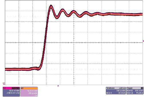 簡單地設置示波器,重復觸發波形,建立波形的余輝地圖,保證波形是重復的。在這一步時一定要關閉內插。如果波形是重復的,它將建立一張很緊的余輝地圖。然后,在確定了重復性之后,您需要高效的采樣率,作為參考給出波形。大多數高端DSO提供了一種等效時間模式(力科示波器上稱為RIS),可以使用這種模式采集參考曲線。力科DSO還提供了一種處理函數,稱為余輝曲線中間值,它從余輝地圖中提取中間波形。保存參考波形,以備以后比較。如果不能確定怎樣保存參考波形,可以打印余輝視圖,以進行比較。