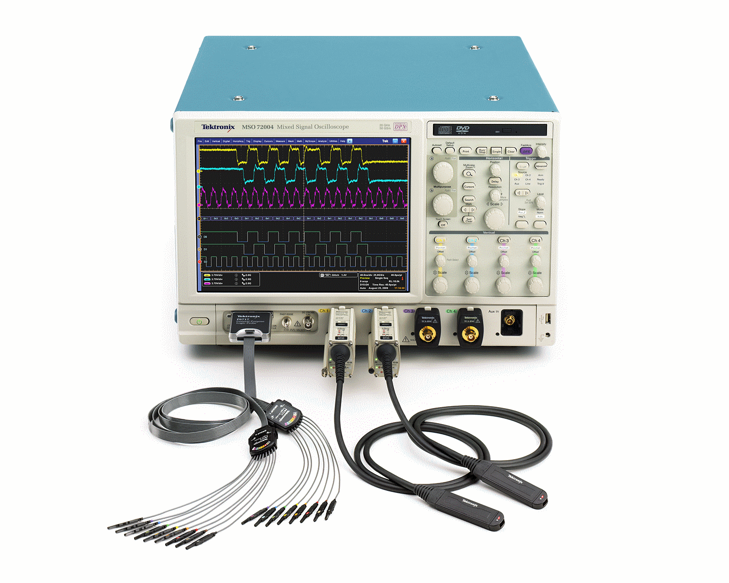 MSO70000系列結合了高性能邏輯分析儀的信號查看能力和定時功能,以及高性能實時示波器的模擬精度、探測和易用性。這使其成為要求苛刻的高速設計應用的理想調試和檢驗工具,如DDR存儲器、高性能ASIC、FPGA、片上系統(SoC)設備和數字RF。此外,MSO70000提供了種類齊全的探測附件,單一探頭可以同時實現與被測設備(DUT)的模擬連接和數字連接,而將探頭接入負載降至最低,從而最大限度地確保信號保真度。