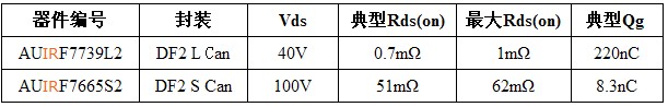 采用新款大罐式封裝的 AUIRF7739L2 具有業內最低的導通電阻,在給定 PCB 區域 40V 電壓時的導通電阻典型值僅為 0.7mΩ 。此外,與 D2PAK 相比,大罐式封裝的占位面積可以減少60%,厚度可以降低85%。這款器件可提供卓越的功率密度和效率,非常適合高負載電機控制應用,包括電動助力轉向系統 (EPS) 和微型混合動力車的電池開關和集成式起動發電機 (ISA) ,以及底盤、傳動系統和動力系統等。