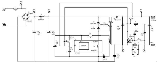 TH102采用雙極工藝,需外置開關功率管,但成本較低廉;TNY264和PIVer12A均采用先進的700V高壓MOS工藝,內置MOS開關功率管,但目前成本較高。