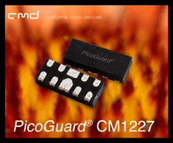 California Micro Devices推出超低電容的ESD器件CM1227,PicoGuard CM1227 ESD器件超低通道輸入電容為0.35pF,適合用于高速數字消費電子應用中。該器件可提供4個通道的±15kV接觸ESD保護,超過了IEC61000-4-2 4級標準。