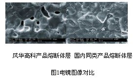 從電鏡圖像對比可見,風華高科產(chǎn)品熔斷體層致密性較好,保險絲有較好的熔斷特性。電子元器件行業(yè)正在朝著高頻化、片式化、微型化、薄型化、低功耗、響應(yīng)速率快、高分辨率、高功率、多功能、模塊化和智能化等方向發(fā)展,正進入以新型電子元器件為主體的新一代元器件時代。產(chǎn)品的安全性和綠色化也將成為影響電子元器件發(fā)展前途的重要因素。