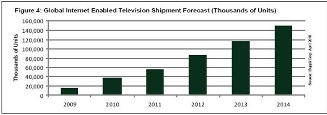 圖4所示為iSuppli公司對2009-2014年IETV出貨量的預測。