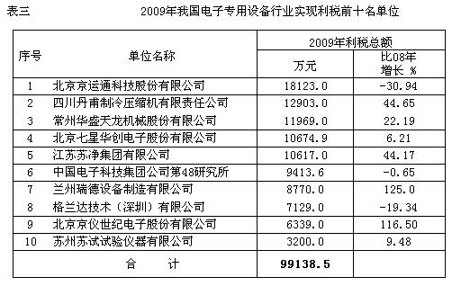 2009年我國(guó)電子專(zhuān)用設(shè)備行業(yè)完成的各項(xiàng)主要經(jīng)濟(jì)指標(biāo)見(jiàn)表一: