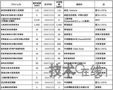 截止2010年4月上旬。此外還有其他大量在建項目,國內(nèi)的太陽能發(fā)電規(guī)模正穩(wěn)步擴大