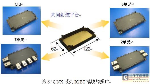 第6代NX系列IGBT模塊產(chǎn)品豐富,包括1200V和1700V兩個(gè)電壓等級(jí),額定電流從35A到1000A,分別有CIB (Converter Inverter Brake)、七單元、六單元、二單元和一單元模塊,共5種電路拓?fù)洹H盗挟a(chǎn)品采用同一封裝平臺(tái)從而降低了模塊的制造成本,使得NX系列IGBT模塊的性?xún)r(jià)比具有不同尋常的競(jìng)爭(zhēng)力。