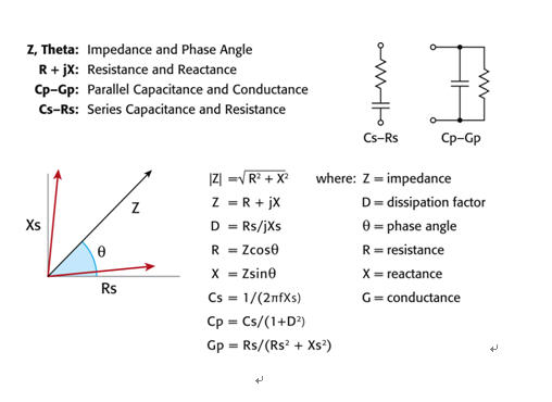 這些測量考慮了與電容相關的串聯與并聯電阻,以及耗散因子(漏流)。圖4給出了這類測量可以測出的主要電路變量。