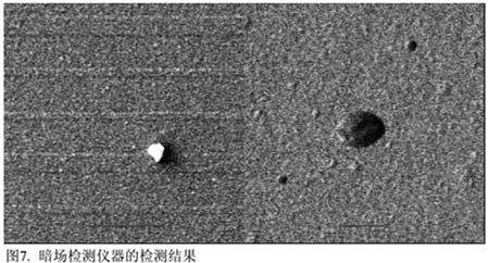由于暗場檢測儀器的接受的更多的信號源都是有一定角度的,所以這種檢測設備會對晶圓的表面更敏感。所以在對通孔刻蝕后晶圓進行檢測結果來看,能抓到更多的是表面的微粒以及通孔刻蝕過程中的聚合物殘留。所以暗場檢測儀器在對通孔刻蝕檢測結果不盡如人意,它只能對通孔刻蝕過程后芯片表面的殘留進行有效的檢測,可是對于通孔刻蝕狀態沒法完全反映(如圖7所示)。