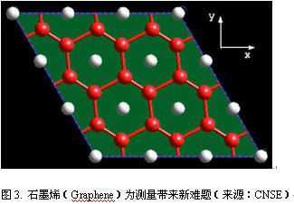 石墨烯是一種穩(wěn)定材料,也是一種禁帶寬度幾乎為零的半金屬/半導(dǎo)體材料。它具有比硅高得多的載流子遷移率(200000cm2/V),在室溫下有微米級(jí)的平均自由程和很長(zhǎng)的相干長(zhǎng)度。因此,石墨烯是納米電路的理想材料,也是驗(yàn)證量子效應(yīng)的理想材料。然而這種材料也非常難以測(cè)量(圖3)。石墨稀顯微鏡是測(cè)量該新材料的必要手段。關(guān)鍵問(wèn)題之一是單個(gè)樣品和多層樣品中石墨稀的層數(shù)。TEM和低能電子顯微鏡(LEEM)是確定層數(shù)的重要檢測(cè)設(shè)備,多層切片模擬式確定TEM檢測(cè)能力和成像條件的有效方式。LEEM可以檢測(cè)層數(shù)及樣品的形貌。