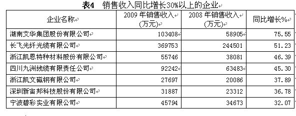 由于2009年受到金融危機(jī)的打擊,許多元件百?gòu)?qiáng)企業(yè)的生產(chǎn)經(jīng)營(yíng)受到極大影響。僅有35家企業(yè)的銷售收入增長(zhǎng)超過(guò)10%,比上屆的41家還少,更遠(yuǎn)低于第21屆時(shí)的65家。僅有湖南艾華集團(tuán)股份有限公司、長(zhǎng)飛光纖光纜有限公司兩家企業(yè)的09年銷售收入同比增幅超過(guò)50%,分別增長(zhǎng)了75.55%和51.23%。而上一屆,銷售收入同比增幅超過(guò)50%的企業(yè)仍有7家。值得一提的是四川九洲線纜有限責(zé)任公司,2008年的銷售收入增長(zhǎng)110.16%,2009年的銷售收入再次增長(zhǎng)45.30%,兩年間的平均增長(zhǎng)率達(dá)到74.75%,獲得如此驚人的發(fā)展速度十分難得。