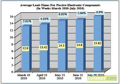 在第二季度,交貨時間被拉長,我們還密切關注了原材料的價格。7月份出現了一次無征兆的跳躍,交貨時間在過去30天里再一次延長了6.9%,其中鉭電容器的交貨時間增加最為明顯,而MLCC的交付時間則縮短了,因為韓國和日本差不多在同一時間開始供貨(圖1.1)