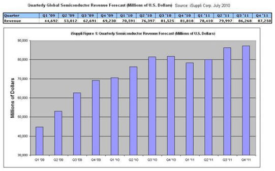 iSuppli表示,到2011年Q1之前半導體業有連續7個季度的增長,這是1991到1995期間有連續19個季度增長的又一次最長的連續季度增長。