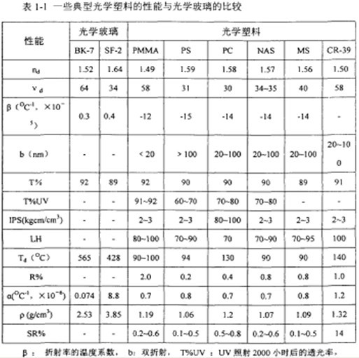 與傳統(tǒng)無機光學材料相比,盡管光學高分子材料的耐熱性、耐候性、耐磨性、耐溶劑性、抗吸濕性及光學均一性(雙折射、光學畸變)較差,折射率、色散范圍較窄,熱膨脹系數(shù)較大,但是聚合物光學材料具有密度小、耐沖擊、成本低、加工成型容易等優(yōu)點,近年來得到了廣泛的應用。常用光學高分子材料有烯丙基二甘醇二碳酸酯等幾種熱固性樹脂和聚甲基丙烯酸甲酯、聚苯乙烯、聚碳酸酯、聚4-甲基戊烯-1、苯乙烯-丙烯腈共聚物等熱塑性光學樹脂。表1-1列出了一些常用光學高分子材料的特性。[page]