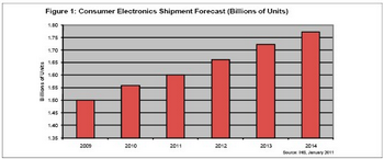 - 預計2011年消費電子產品出貨量將達到16億個