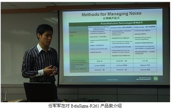 生活在都市的人們通常會在嘈雜的環(huán)境中撥打或接聽電話,人們總是希望能夠像在田野中一般獲得清晰并且沒有失真的聲音。對于手機廠商來講,采用能夠清晰拾取語音并抑制噪聲的解決方案是關(guān)鍵。為了應對上述挑戰(zhàn),安森美半導體推出了高性能語音捕獲SoC方案BelaSigna-R261。安森美半導體音頻與助聽器中國市場開發(fā)經(jīng)理任軍軍在日前的產(chǎn)品發(fā)布會上對BelaSigna-R261的特性做了介紹,并現(xiàn)場對產(chǎn)品進行了演示。