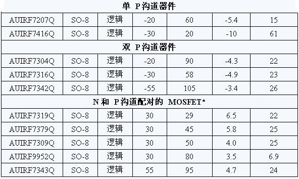 IR 亞太區銷售副總裁潘大偉表示:“由于可以滿足寬泛電壓的要求并采用 SO-8 封裝和 IR 的平面技術,我們的最新系列 MOSFET 可以提供堅固緊湊的解決方案,非常適合需要用堅固 MOSFET 驅動阻性和感性負載的應用。”